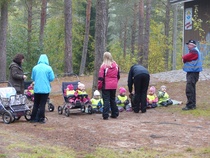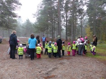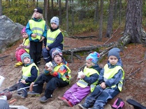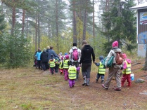 Päiväkotilaisia luontoretkellä Pilvimajalla