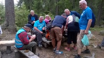 Reitti Pilvilammella kiersi pääosin latualuettamme, jonka yhdistyksen ahkera talkooväki Pauli Rantasen johdolla oli saanut käveltävään kuntoon. Heinät oli niitetty ja pensaat poistettu. Taukopaikoilla Pilvimajalla, Eetun Piilolla ja Aurinkolaavulla isännöivät Pekka Uusi-Hakala ja Kari Kujala. Juomista ja syömistä riitti. Bussikuljetuksesta Arvo Latvala.
