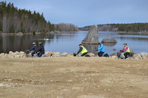10.00 startti Uponorin parkkipaikalta,  Huokausten sillalla tutustuttin uuteen digi- vieraskirjaan ja Aurinkolaavulla syötiin eväitä.