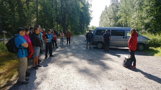 Paikalle oli saapunut 17 retkeilijää,joista Pauli ja Jari toimi loistavina nuotiomestareina. Alkuun teimme 1,5 tunnin hyvinvointiretken luontopolulla. Pysähdyimme matkalla tekemään Metsämieli-harjoituksia, joissa mm. rentouduttiin, rauhoituttiin ja pohdittiin hyviä tekoja.