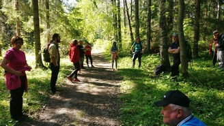 Suomen Latu ry:n Elli Keisteri-Sipilä vei Latulaiset ohjatulle aistiretkelle.