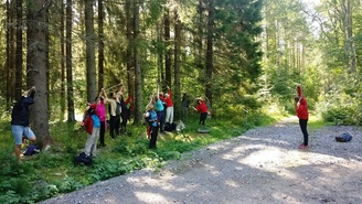 Puolessa välissä tehtiin myös risujumppa. Tavoitteena tällä retkellä oli kävellä mahdollisimman rauhallisesti ja luonnosta nauttien kaikilla aisteilla. Osa ryhmäläisistä käveli polun paljan jaloin tuntien luonnon eri materiaalit vahvasti jalkojen alla. Retken lopuksi näimme leikkisät oravanpoikaset kuusen rungolla.