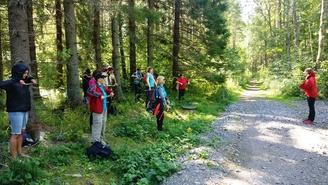 Suomen Latu ry:n Elli Keisteri-Sipilä vei Latulaiset ohjatulle aistiretkelle.