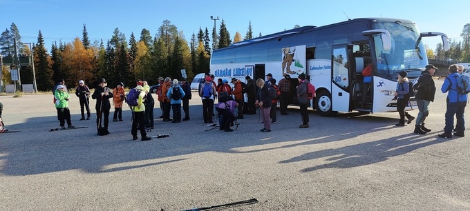 Runsaan aamupalan jälkeen Arvo kuljetti valloittajat bussilla Pyhätunturikeskukseen. Noitatunturin valloitus aloitettiin Kerontien risteyksestä. Liikuttiin hyväkuntoista polkua Isokurun kodalle,sieltä rappusia alas kuruun ja pian kurusta rappusia ylös hyväkuntoiselle polulle. Tasaista menoa , Oravalammen laavulle pikku (50m ylös) lämmittely nousu ja siellä tauko ja kunnon tankkaus